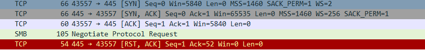 패킷을 캡쳐해 보았더니 PC측에서 연결을 끊어버린다.