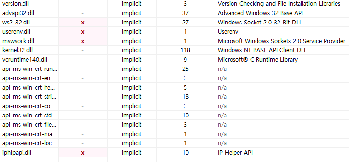 가짜 static 임.... static link 이면 api-ms 없어야 할텐데...