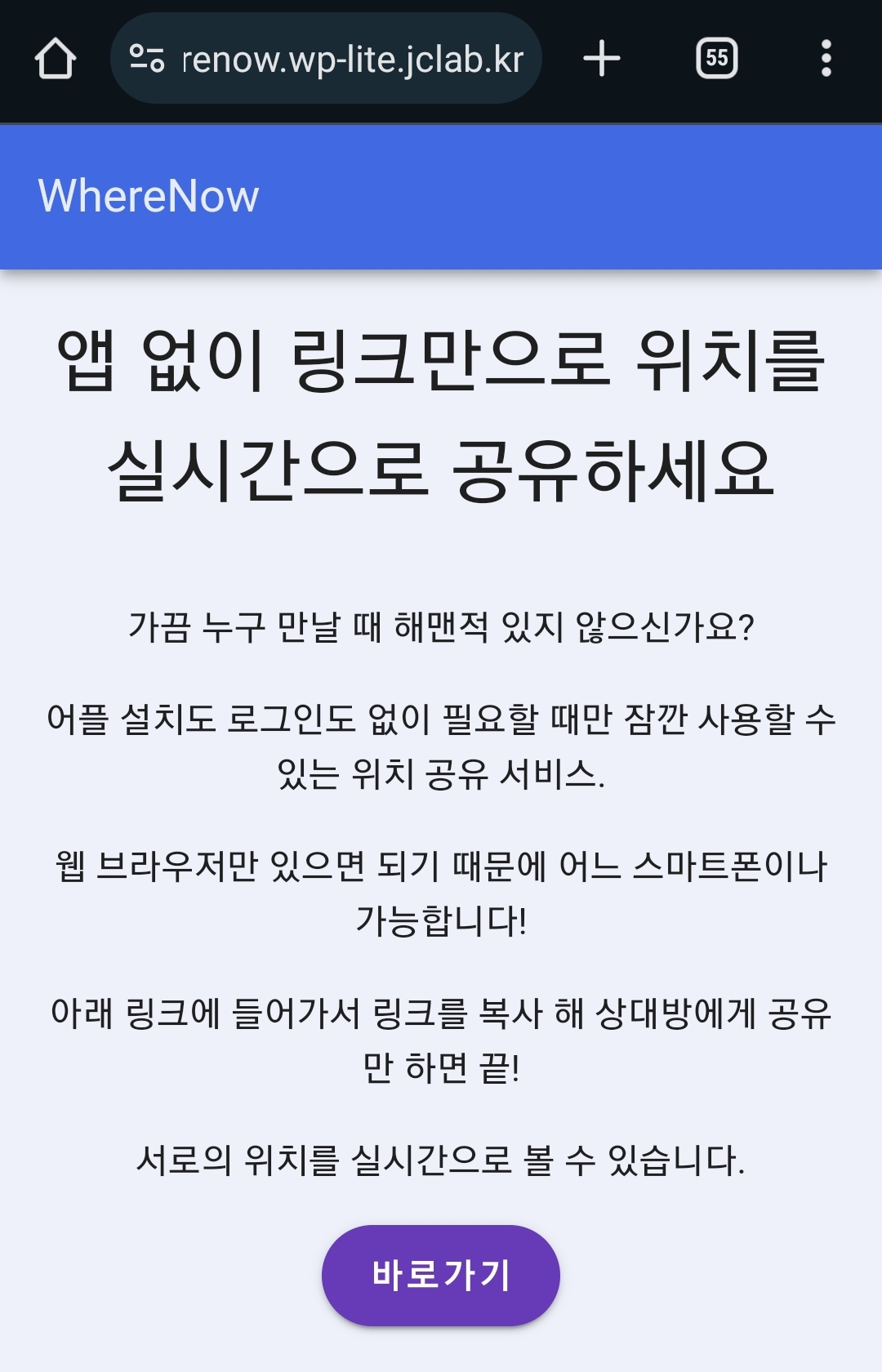 어플 설치 없이 필요할 때만 잠깐 사용할 수 있는 위치 공유 사이트를 만들었습니다.