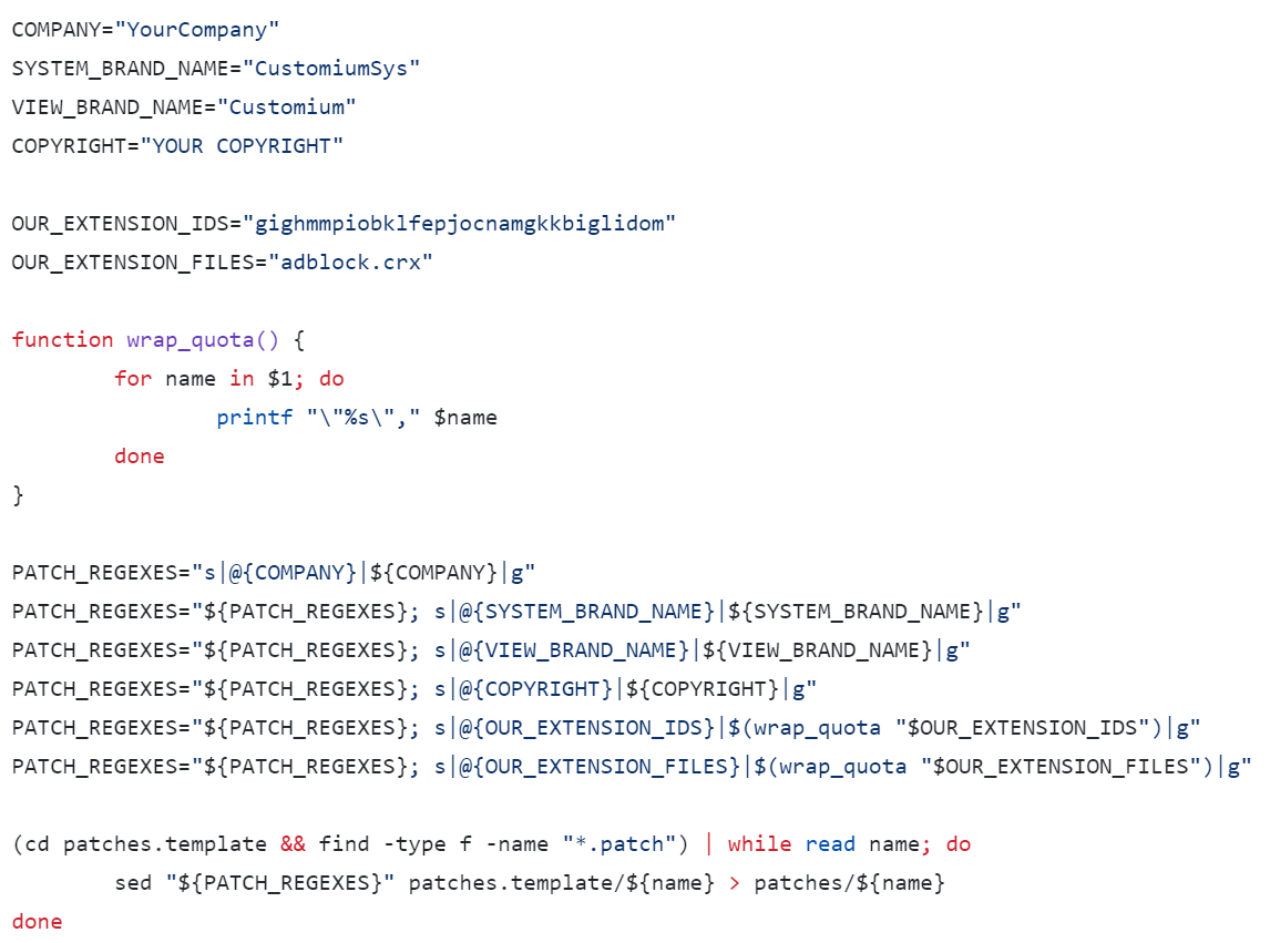 Chromium 과 별도로 동작하며, 브랜딩 하려면 몇가지를 수정해야 한다.