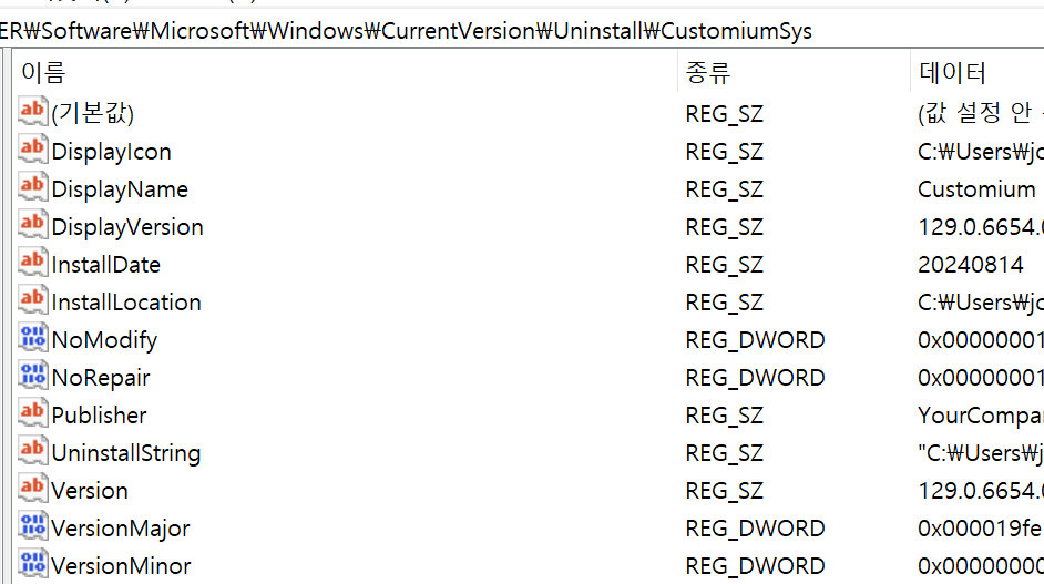 - Registry 키 이름