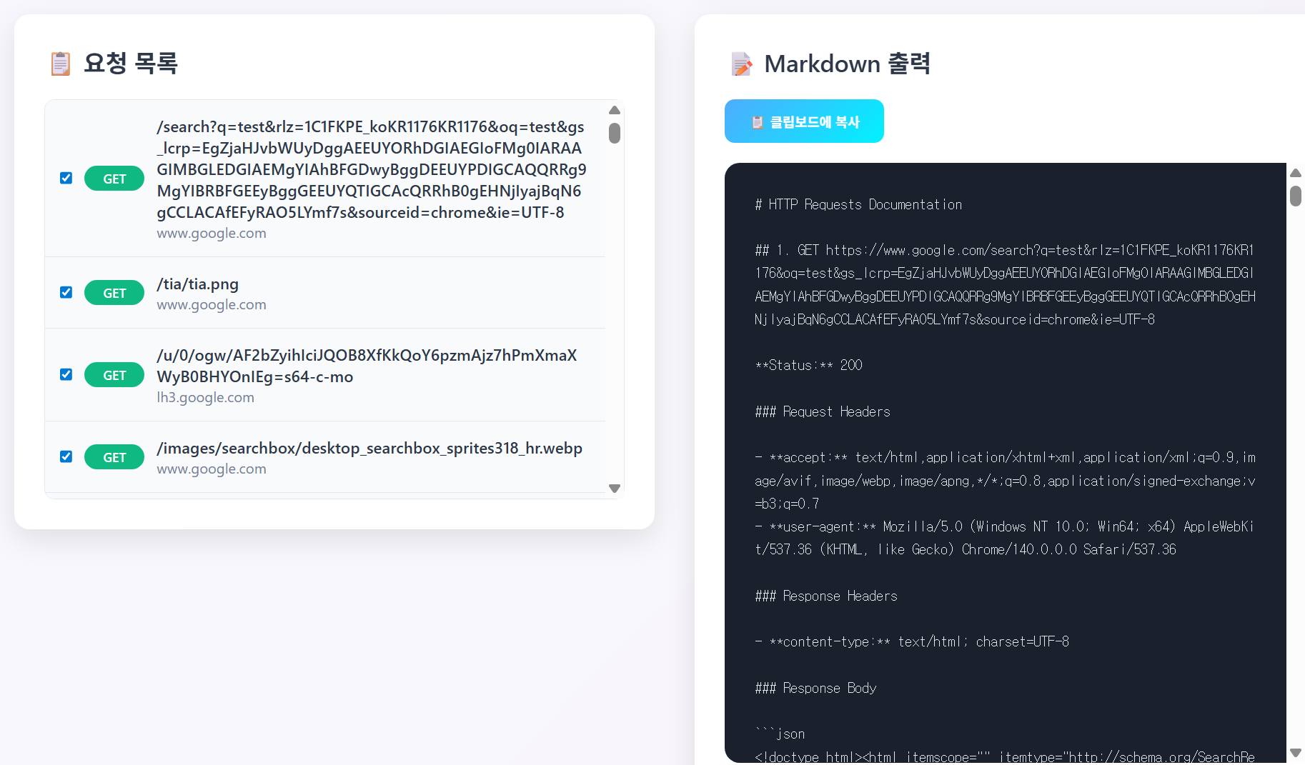 har 캡쳐 파일을 markdown 으로 변환하는 간단한 웹 (made by claude).